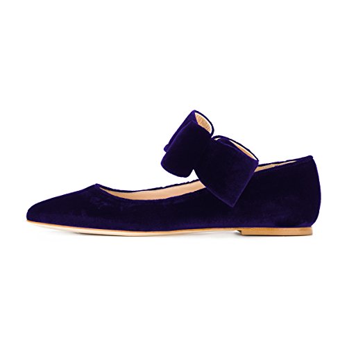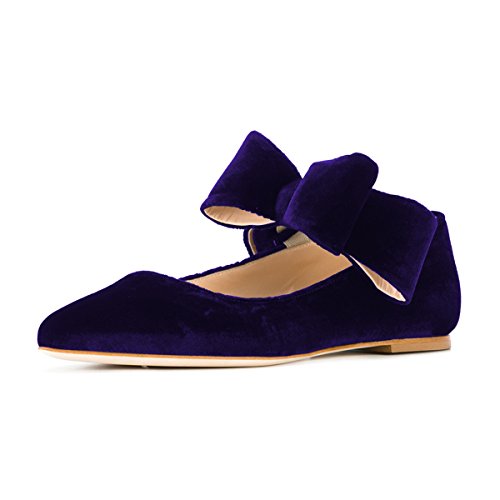 (FSJ)/Women's/Flats/DIRECT FROM USA/FSJ Women Cute Pointed Toe Flats with Bowknot Velvet Low Heels Slip On Comfy Shoes Size 12 Purple