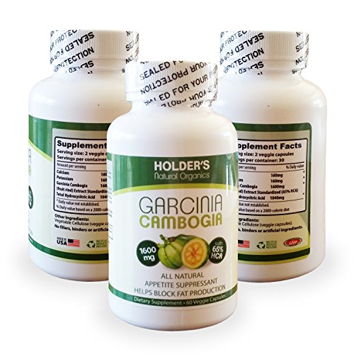 -. Title : Holder's Natural Organics Is a Potent 100% Pure Premium Garcinia Cambogia Fruit Extract 1600mg with 65% HCA; All Natural Appetite Suppressant; Hunger Control; Fat Burner; Carb Blocker; and Weight Loss Supplement; All Natural Fat Burner; Blocks Fat Production, No Fillers, Binders or Artificial Ingredients, Veggie Capsules, Non GMO, Pharmacutical Grade, ***Made in the USA*** 100%