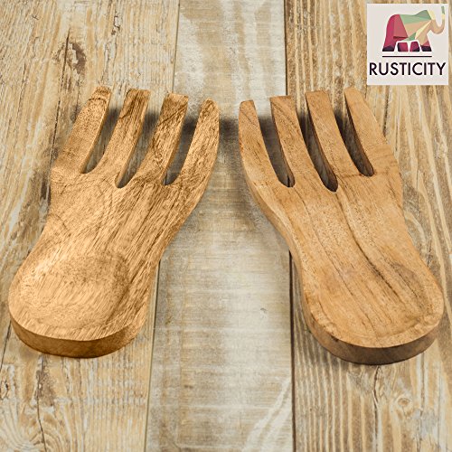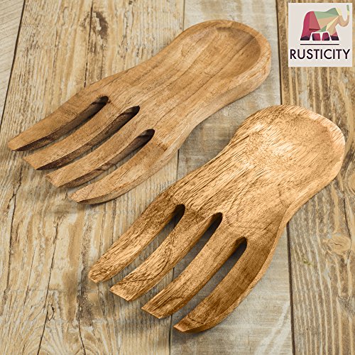 Rusticity Wooden Salad Servers- Beautifully Handcrafted (Set of 2) | Mango Wood | Handmade| (8.3 in)