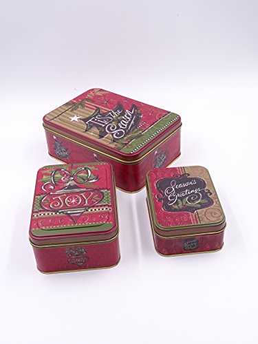 Rectangular Storage Tins set of 3, Shabby Chic,Christmas Holiday Themed