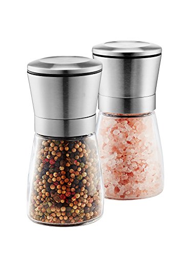 REFILLS ARE EASY WITH NO MESS - About 5 inches tall and holding 3/4 cup of spices, each grinder is the perfect size to refrain from constant refills yet without being too cumbersome. With the clear glass body, you’ll know when the next refill is. The stainless steel top easily screws off revealing a wide opening for easy and mess free refills.