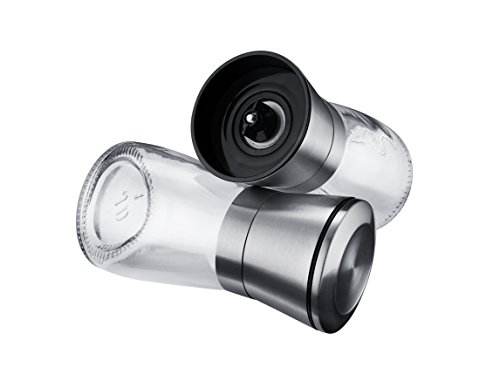 CONSTRUCTED AND BUILT TO LAST- The salt and peppermill pair have their grinding mechanism on the top of the grinder, ensuring salt and pepper ends up only on your food and not all over your table. The ceramic grinder is non-corrosive and will not absorb flavors, while the plastic knob on top allows you to easily adjust from a fine to coarse grind.