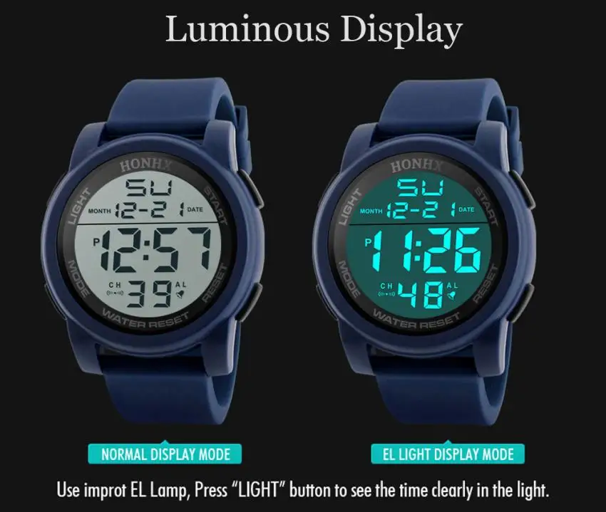 Waterproof Mens Watches:LED Digital Outdoor Sports Watch Men Multifunction Student Wrist watch