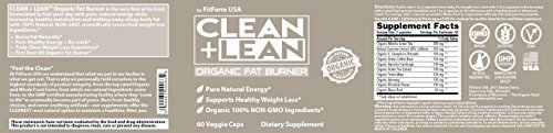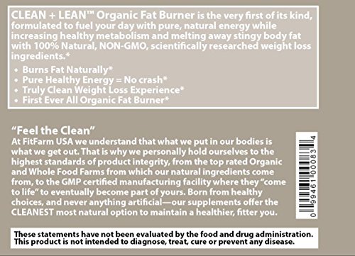 -. Title : CLEAN + LEAN -ORGANIC FAT BURNER by FitFarm USA - Worlds First Organic Fat Burner Supports Healthy Weight Loss with 100% Organic Non-Gmo Ingredients! Gluten Free & Vegan 60 Caps- "Feel the Clean"