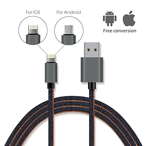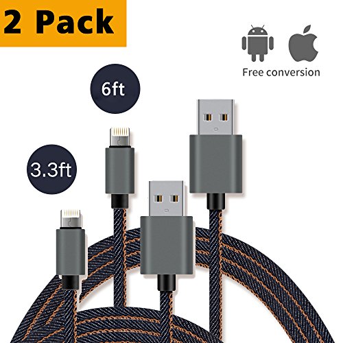 Aoken 3.3ft and 10ft (2-Pack) Denim Micro USB Cable for Android and IOS Devices Fast-Charging and Data Transmission 2 in 1 with Exquisite Accessory Case