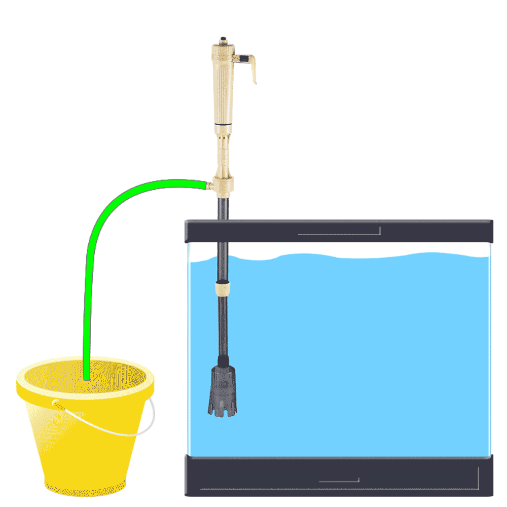 Press the on/off button on the top, the water in aquarium will be pumped out automatically through a hose for changing water.