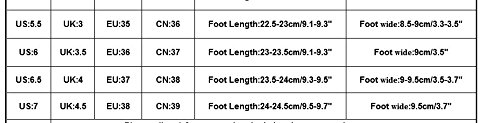 Studio : Sikye Publisher : Sikye Product Description Appropriate Season: Winter Occasion: IndoorOutdoor,Fashion,Leisure Package: 1 Pair Women Shoes(Not including shoebox) US:5.5 UK:3 EU:35 CN:36 Foot Length:22.5-23cm/9.1-9.3" Foot wide:8.5-9cm/3.3-3.5" US:6 UK:3.5 EU:36 CN:37 Foot Length:23-23.5cm/9.1-9.3" Foot wide:9cm/3.5" US:6.5 UK:4 EU:37 CN:38 Foot Length:23.5-24cm/9.3-9.5" Foot wide:9-9.5cm/3.5-3.7" US:7 UK:4.5 EU:38 CN:39 Foot Length:24-24.5cm/9.5-9.7" Foot wide:9.5cm/3.7" 0