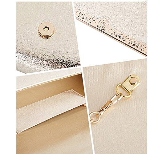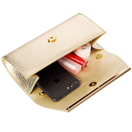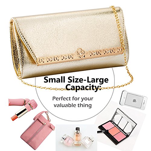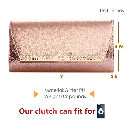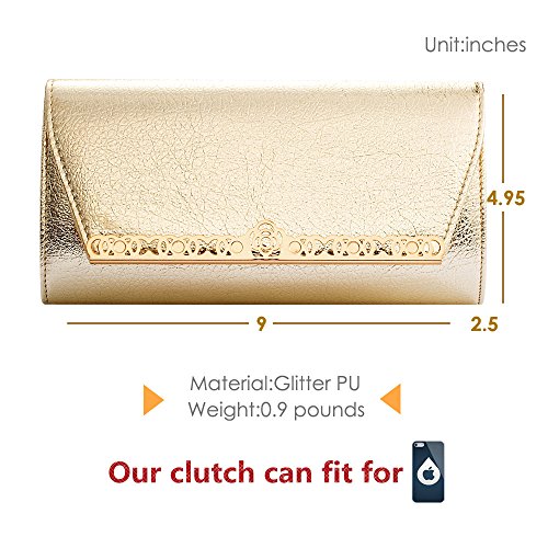 -. Feature : Size: 9"(L)x 4.95(H)" x 2.5"(W)inches . / FABRIC:Made of high quality polyester and Glitter PU leather. / CARRY OPTION:You can hold this evening bag in your hand or you can also use it as a shoulder bag with the chains in some events. / CAPACITY:Enough room for your valuable thing,such as cell phone,small wallet,mirror,lipstick,makeups,cash,credit card,car keys,and so on. / OCCASION:Perfect for weekend, wedding, evening party, prom, cocktail various parties,night out or formal occasions and so on.