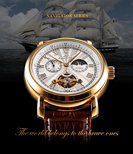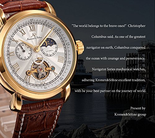 -. Feature : Present by Kronen & Söhne group / Navigator series / Crystal case back / 24hours, Small Second Hand,Day/Night Phase Display / Please note this is a MECHANICAL WATCH which will stop working if you are not moving for a long time. Please wind up the watch before EVERY USAGE, and keep the watch away from magnets to ensure the watch keeps working. For detail instructions of the watch, you can access our Kronen & Söhne official website to download. If any questions, don't hesitate to contact us.