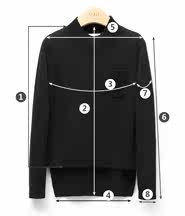 尺码 ①前衣长 ②后中长 ③胸围 ④下摆围 ⑤肩宽 ⑥袖长 ⑦袖臂围 ⑧袖口围