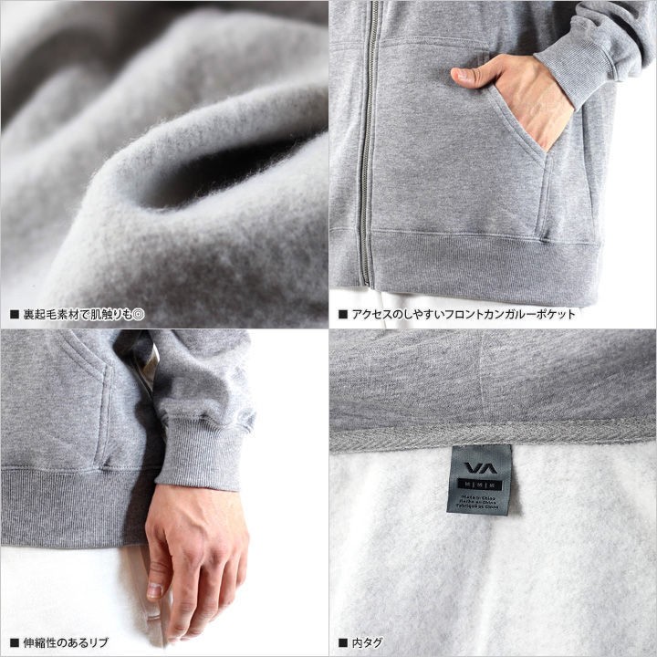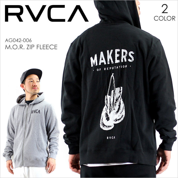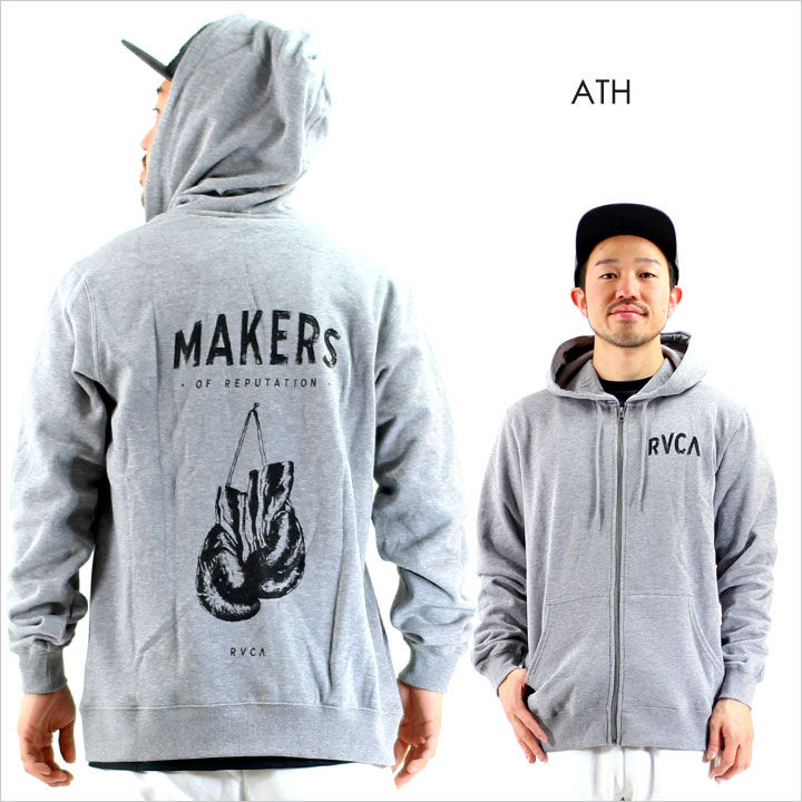 格闘家もサポートしているRVCAならではのデザインが光るジップアップパーカー。