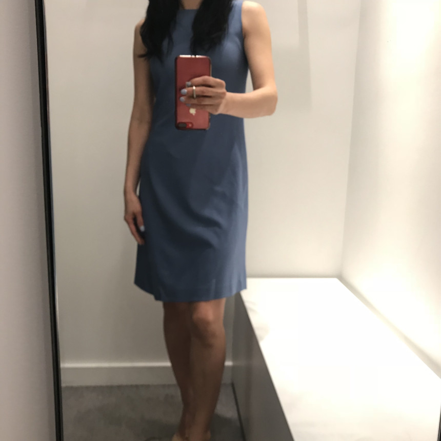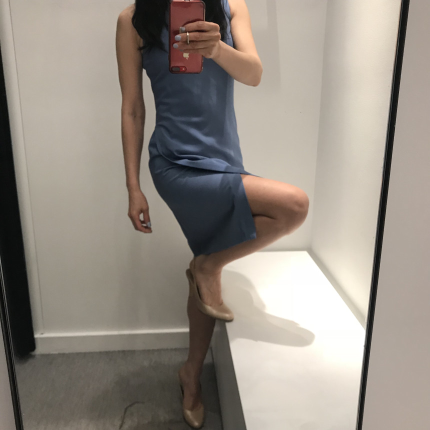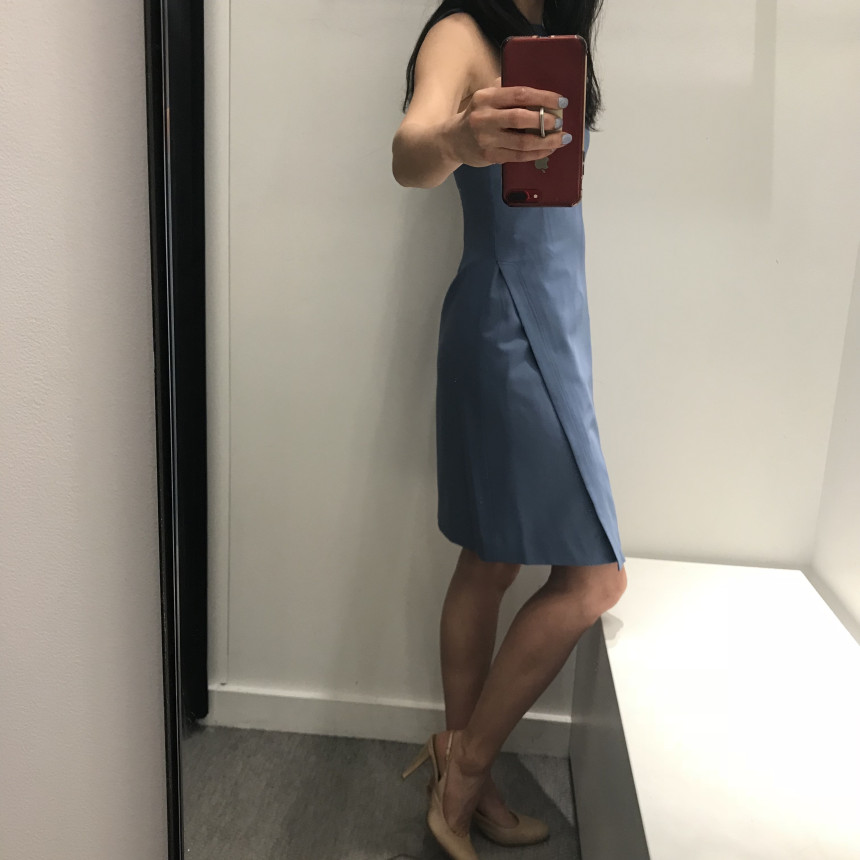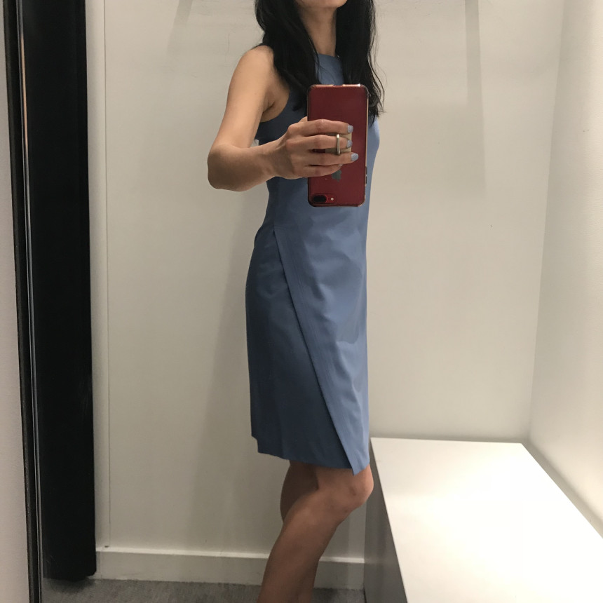 띠어리 민소매 PIGEON BLUE 슬릿 원피스 사이즈 0착용샷 입니다.