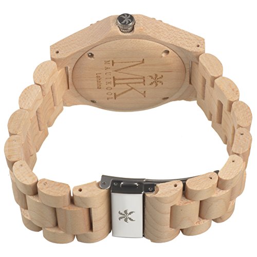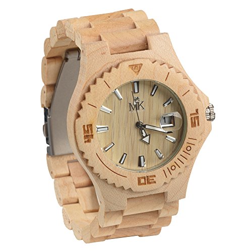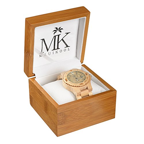 Studio : Maui Kool Publisher : Maui Kool Binding : Watch Product Description This handmade Eco-friendly, men's, analog water resistant wooden watch is made with high quality 100% maple wood. Each piece is special since no two pieces of wood are exactly the same. Maui Kool watches are lightweight and since they are made of wood, little color differences are unavoidable. Each unique piece is elegantly presented in a bamboo box, making this watch a perfect present for him or her. The band can be easily sized by a watchmaker or jeweler to fit just about anyone. All of our wooden watches are made from 100% natural wood. Each watch is paired with a high quality Miyota Japanese Quartz movement crafting the perfect combination of beauty and function. Maui Kool wooden watches are guaranteed to be a talking point wherever you go!