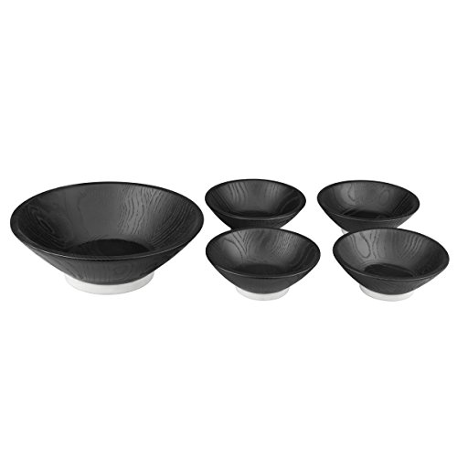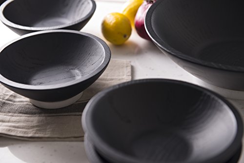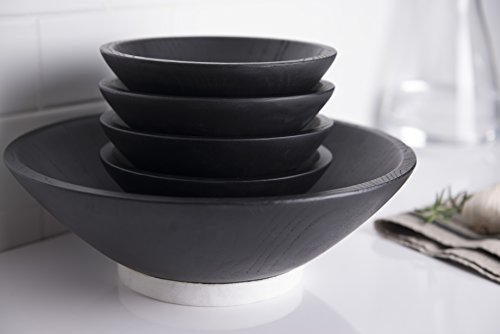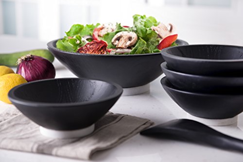 Fleischer & Wolf Athens 12" Salad Bowl & 7" Nappy Bowl Set(5PC)-Black Stained Ash with Marble base-Perfact Christmas Gift
