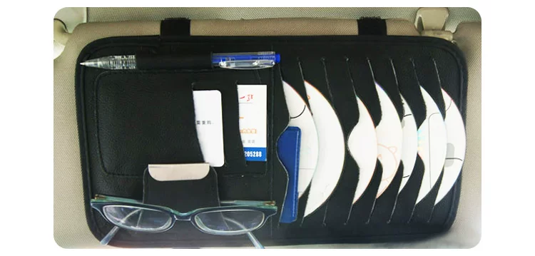 [Products] 1. It can be used to put the CD 8, ID card pocket 3, notepad pencil one. Glasses clip one; you can also clip cards, coins and bills and other debris. 2. CD visor leather bags, durable, very easy to use set in the car sun visor, washable easy.