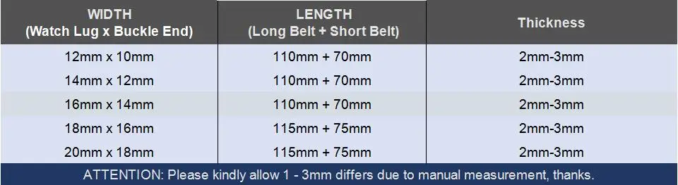 Buckle Color:Silver / Gold (PVD) / Black (PVD) / Rose Gold (PVD)