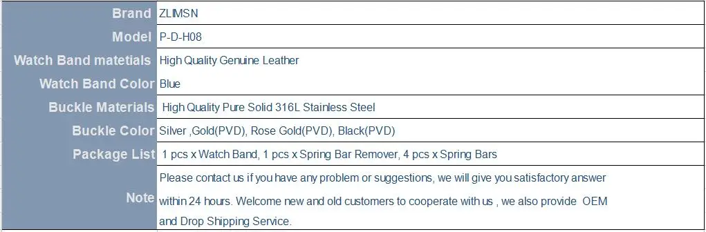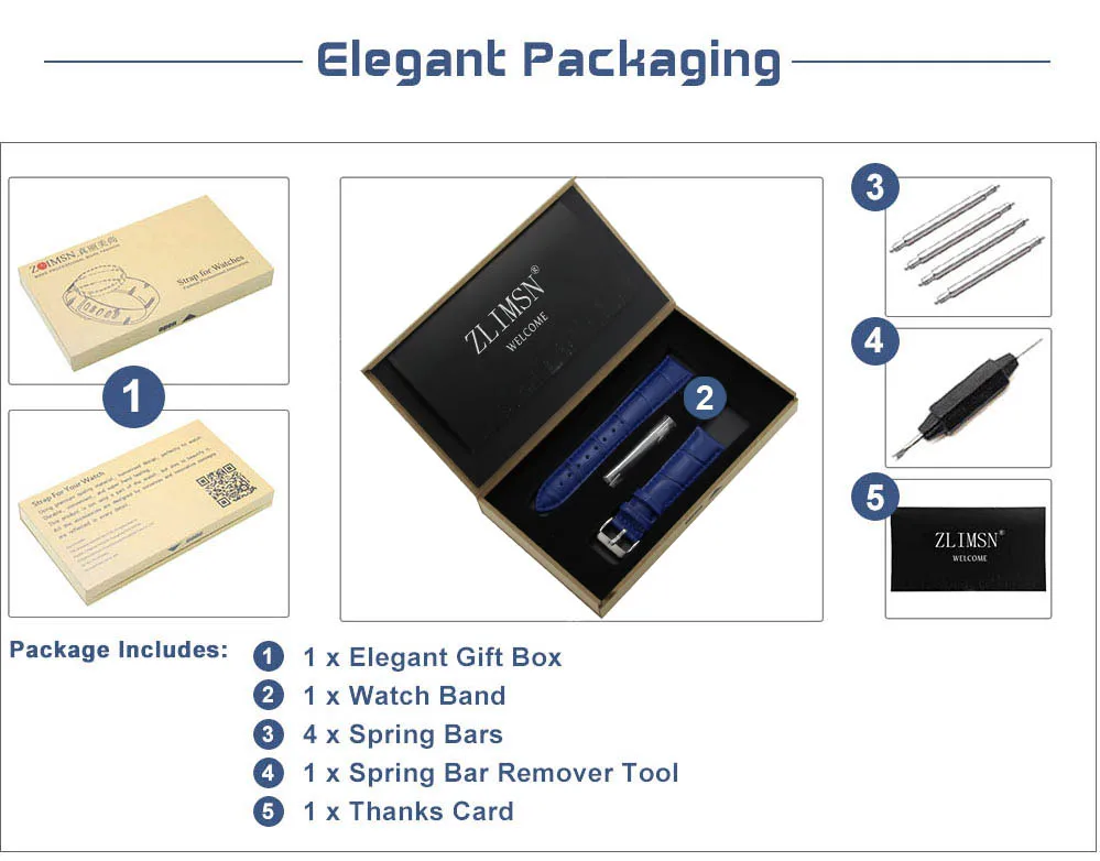 Package Includes:1pcs x Watchband, 4pcs x Spring Bars, 1pcs x Spring Bar Remover