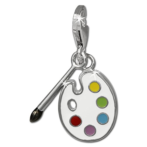-. Title : SilberDream Charm mixing palette brush colorful enameled 925 Sterling Silver Pendant FC836F