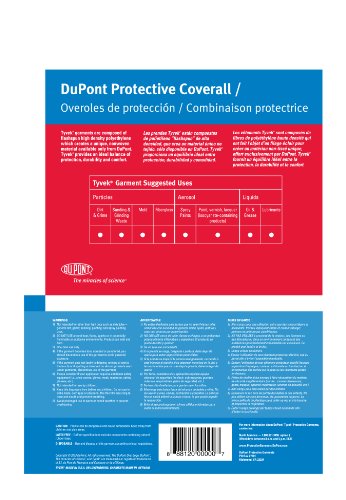 DuPont TY127S Tyvek Protective Coverall with Hood with Safety Instructions, Elastic Cuff, L, White (Retail Package of 1)
