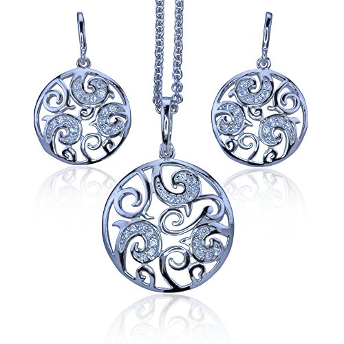 -. Title : Circle Shape Pendant and Earrings Set with Simulated Diamonds in Sterling Silver with 18" Chain