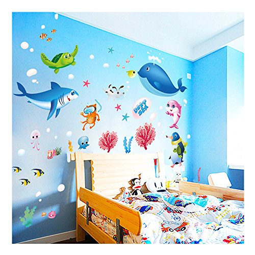 -. Title : Colorful Fish Shark Ocean Wall Stickers Vinyl Decal Mural Kid's Room Decor