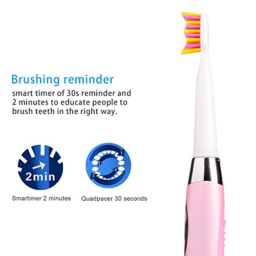 2 minutes smart timer with interval pause reminding each 30 seconds. Waterproof electric toothbrush rated IPX7. Low battery reminding. Anti-slip handle.