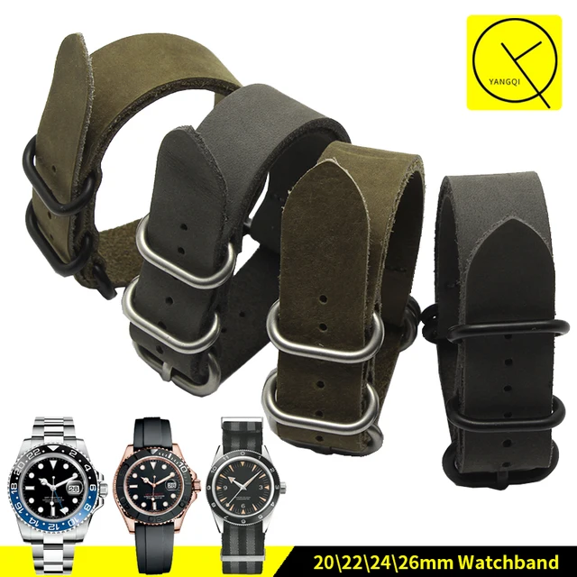 | [해외]나토 손목 20/22/24/26 미리메터 스포츠 정품 가죽 레트로 손목 시계 스트랩 액세서리 긴 벨트 오메가 Rolexwatch 세이코 |