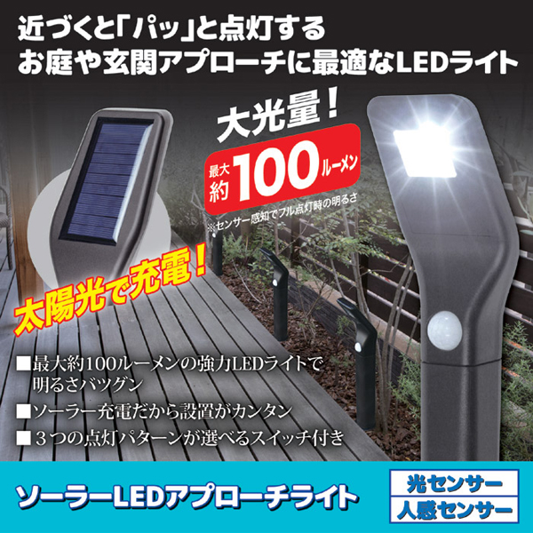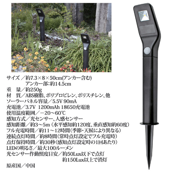 ●人感センサーを内蔵してますので、周囲が暗くなり、人が近づくと点灯してくれます。