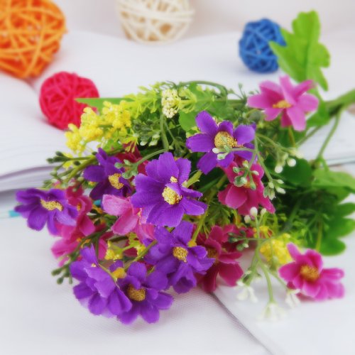 - Title : 1 Bunch Fake Cineraria Artificial Flower Bouquet Home Office Decor (Fuchsia and Purple)