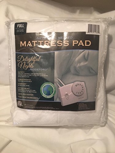 -. Brand : Delightful Nights -. Color : White -. EAN : 0657812150340 -. Feature : Analog Mattress Pad - Ultra Thin Wire Comfort / Size : full ( 54" x 75") - 9 Personal Heat Settings / Fitted Skirt - 10 Hour Auto Shut Analog Controller - / Machine Washable / 5 Year Limited Warranty - UL and cUL Listed -. Model : R202 5901 -. ProductGroup : Home -. ProductTypeName : HOME_BED_AND_BATH -. Size : Full -. Title : Biddeford Automatic Electric Heated Fitted Mattress Pad - White (FULL) -. UPC : 657812150340