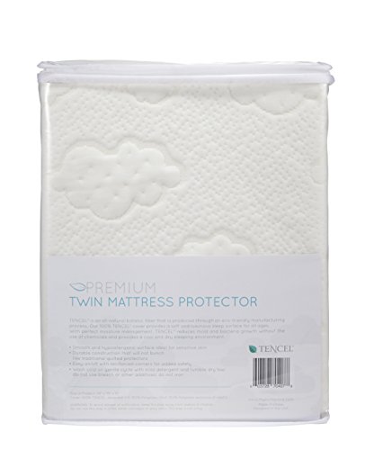 -. Feature : 100% NATURAL TENCEL COVER: TENCEL eucalyptus based fibers (grown free of pesticides and herbicides) provide a smooth and luxurious sleeping surface that is naturally hypoallergenic and perfect for a child's sensitive skin. This protector provides a soft padded layer that won't bunch, shrink, or lose shape after washing like traditional quilted protectors. / SECURE & EASY ON/OFF: No more wrestling mattress protectors; our sleek design provides easy application with deep pocketed corners that have been reinforced for added safety. Our mattress cover fits all standard twin size mattresses. / WATERPROOF: This mattress protector provides a quiet and safe alternative to vinyl waterproof layers. Baby safe waterproof layer free of solvents, BPA, VINYL, PVC & PHTHALATES means no plastic smell or dangerous and toxic off-gassing. / MACHINE WASHABLE: We understand the need for easily washable bedding, especially with potty training toddlers. This protector is machine washable with mild detergent and can be tumble dried on a low setting. / 10 YEAR WARRANTY: We guarantee you are going to love your TENCEL mattress protector so much that it comes with a 10 year manufacturer warranty. We understand the worries that come with parenthood, that's why we want to give you the peace of mind in knowing that you're investing in a quality product that will last.