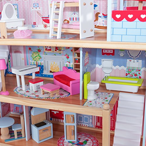 -. Feature : Three levels, Five rooms and a balcony / Windows open and close. Finely detailed artwork / Smart, sturdy wood construction. Packaged with detailed, step-by-step assembly instructions
