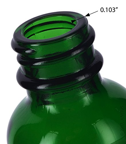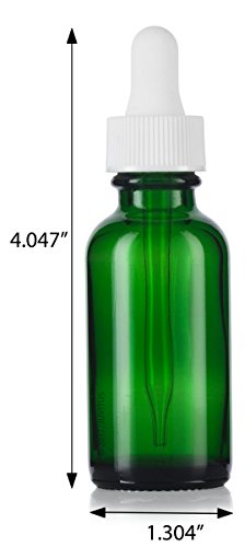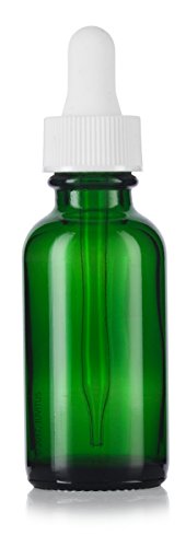 1 oz Green Glass Boston Round White Dropper Bottle (12 pack) + Funnel and Labels for essential oils, aromatherapy, e-liquid, food grade, bpa free