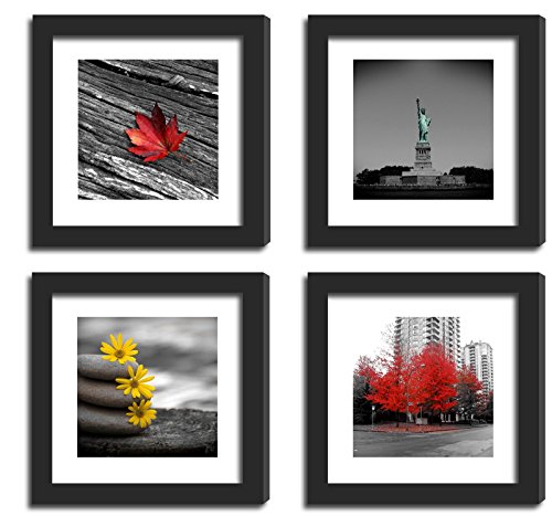 -. Feature : Package include 4Pcs x black wood frame, 8x mats, 4x double side photo, choice using my photo or frame your own photo / 4x wood frame fit 11x11" inch (28x28cm) prints without mat (Window 10.6 x 10.5"); Frame whole edge size 12.2x12.2 inch (31x31cm), 0.78"(2cm) thick; 4x mats matted exact fit 8x8" inch photo, the mat actual opening is about 7.5 x 7.5 inch (19x19cm) / Other 4x mats matted excat fit 4x4" inch photo, the actual mat opening is about 3.75 x 3.75 inch (9.5x9.5cm). We recommend taping the photo to the back of the mat / Frame material is wood,real glass; Easy setup holding on wall(Free holding tools: Nails, Hooks); Free desktop standing or wall hanging / Brand "SMARTWALLSTATION" has been registered and protected.