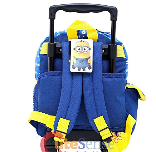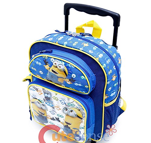 -. Brand : Despicable Me -. Color : blue -. Department : boys -. EAN : 0843340136578 -. Feature : Measures around : 12"H x 10"W x 4"D / Two Front pockets with zipper closure / Two side meshed pocket / Adjustable Straps for a Personalized Fit, Padded back and Shoulder Strap make it comfortable to wear / High quality product -. Model : 36578 -. PackageQuantity : 1 -. ProductGroup : Apparel -. ProductTypeName : LAGE -. Size : small -. Title : Despicable Me Minions Look At You 12 Inches Rolling Backpack-36578 -. UPC : 843340136578
