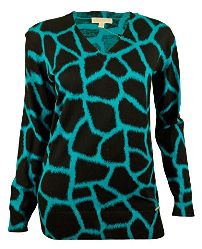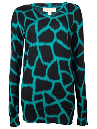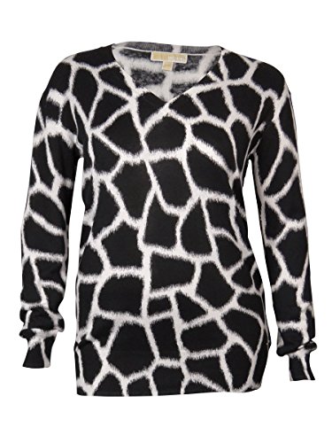 Michael Kors Women's Animal-Print V-Neck Sweater; Long Sleeves; Cotton/Rayon.