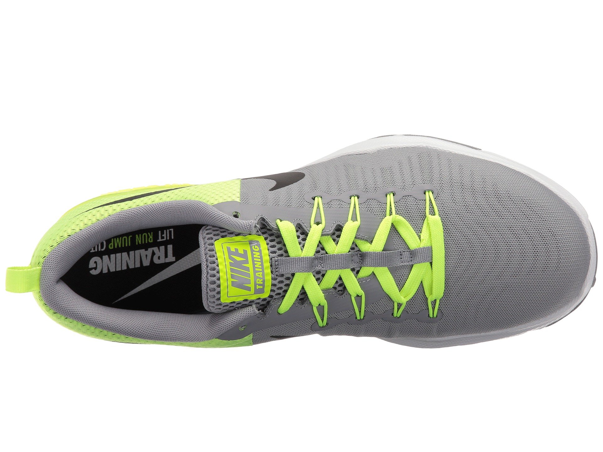 | Product Information SKU: #8767521Run, jump, and move with explosive speed in the Nike? Zoom Train Action cross-training shoe!Breathe-Tech construction helps create a locked-in fit. Flywire cables built into the lacing locks the foot down. Lace-up closure. Heel pull loop.Padded tongue and collar. Breathable fabric lining offers a great in-shoe feel. Injected Phylon foam midsole deliver lightweight cushioning, resiliency, and responsiveness. Visible Zoom Air unit provides responsive cushioning. Multi-patterned traction rubber outsole. Imported. Product measurements were taken using size 11, width D - Medium. Please note that measurements may vary by size.Weight of footwear is based on a single item, not a pair.Measurements: Weight: 11 oz |