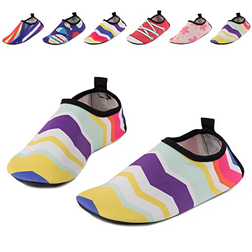 -. Feature : QUICK-DRY UPPER - High stretch breathable fabric with strong wicking performance offer you with comfortable, fast-drying protection. / NON-SLIP OUTSOLE - Flexible rubber bottom with honeycomb pattern to prevent slipping during exercise and sports activities. / FOOT SAFETY - Flexible thick rubber outsole to protect your feet being hurt by sharp objects. / MULTIFUNCTIONAL SHOES - Perfect for water park, beach, swimming, swimming and other indoor and outdoor, leisure and other sport activities. / VARIOUS SIZE AVAILABLE - Various size water shoes are designed for toddlers, little kids, big kids. When you choose the size, please click the "SIZE CHART" and read it before ordering.