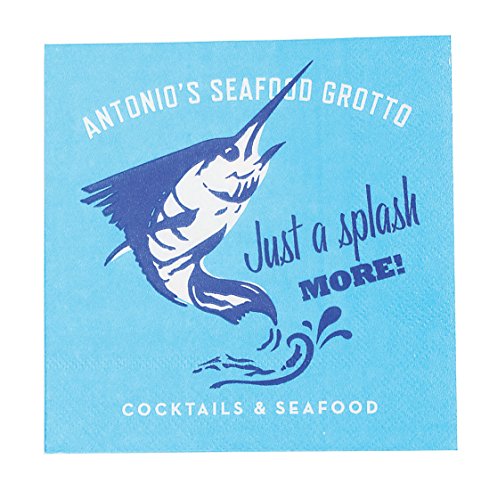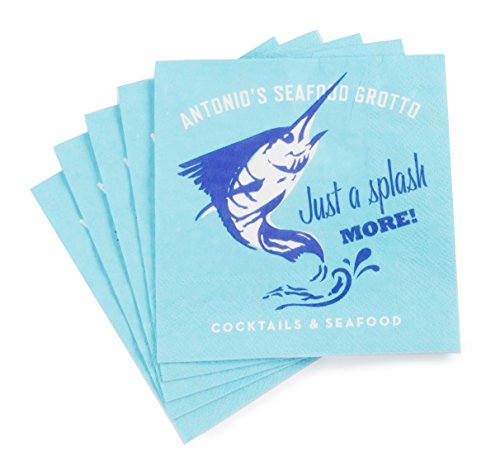 Party Partners 20 Count 3 Ply A Splash More Please Happy Hour Vintage Style Cocktail Napkins, Blue