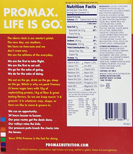 -. Binding : Health and Beauty -. Brand : Promax LS -. Label : Promax LS -. Manufacturer : Promax LS -. ProductGroup : Grocery -. ProductTypeName : GROCERY -. Publisher : Promax LS -. Studio : Promax LS -. Title : Promax Lower Sugar Protein Bars (Pack of 12)