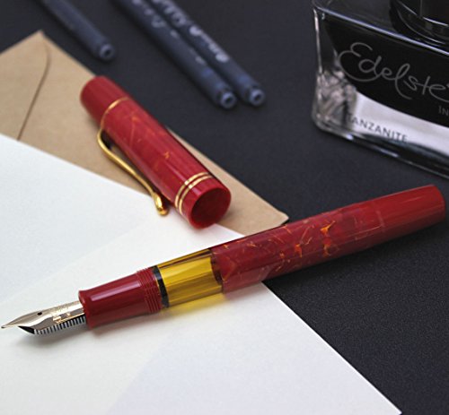 -. Feature : Color: Red || Trim: 24 k Gold / Nib: 14k Gold || Filling System: Piston Filler / Closing System: Twist || Closed length: 122 mm. / Barrel length: 116 mm. || Posted Length: 155 mm. / Barrel width: 9 mm || Weight (with cap): 15 gr.
