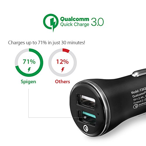 Quick Charge 3.0 Car Charger, Spigen Dual Output USB Car Charger QC 3.0 + Smart 5V/2.4A for LG G5, HTC 10, Samsung Galaxy S7/S6/Edge / Galaxy S8 / S8 plus, iPhone, iPad,and More(Black)