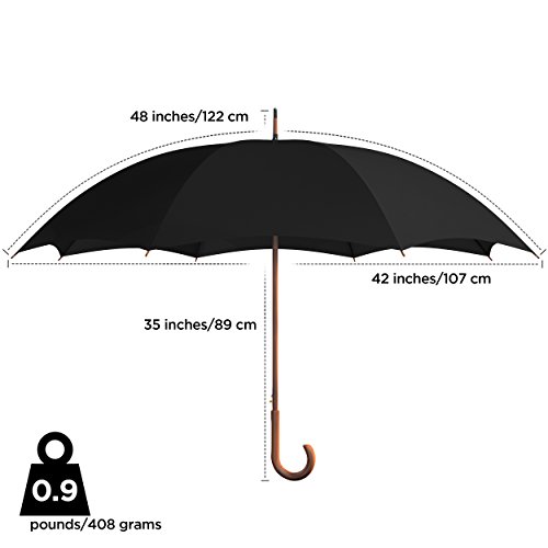-. Feature : Instant Weather Protection - This windproof umbrella with velcro straps has an auto open feature for quick canopy release, so you'll never have to strle to find rain or sun protection at a moment's notice. Its full canopy shields your hair and face from inclement stormy weather or dusty air. / Travel in Style - Weighing only 0.9 pounds, this black walking cane city umbrella makes a perfect lightweight walking stick for men or boys, and an elegant parasol for women, and for girls. Its J-crook wooden handle adds a touch of classic style no matter where you travel. / The Gift of a Durable Umbrella Cane - Procella Umbrella products offer durability other umbrellas don't. They also make great gifts for outdoor lovers. This Procella Umbrella is heavy duty with durable, super waterproof fabric and fiberglass ribs, so you'll have maximum protection even in extreme weather conditions. / Best Unisex Umbrella, Guaranteed - This classic doorman style umbrella is great for men and women alike. Perfect for rain protection around town, shade from the hot sun during golf tournaments, at the beach, or at other outdoor sport events. We guarantee your satisfaction 100%. If you don't love everything about this umbrella, just send it back for a full refund. / Use it All Year Long - Unlike other outdoor accessories, this Procella Umbrella is a top market product all year. That's because it is great for summer, winter, fall, and sP.R.Ing weather. It's water repellent for rain and snow, wind resistant for a gentle or bad wind, and rustproof for durability.