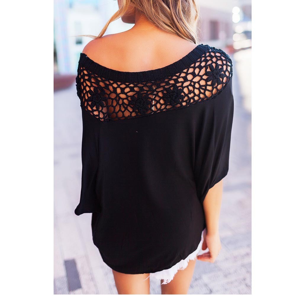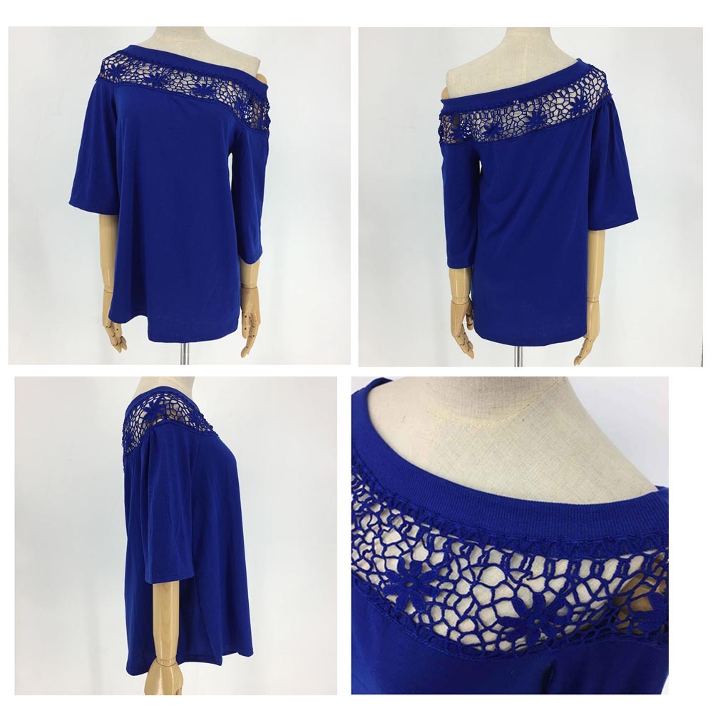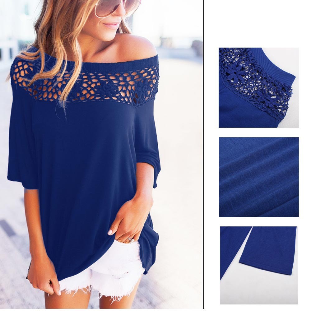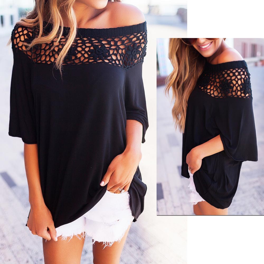 シンプルな無地生地に花柄レースが大人の抜け感を醸し出すオフショルトップス