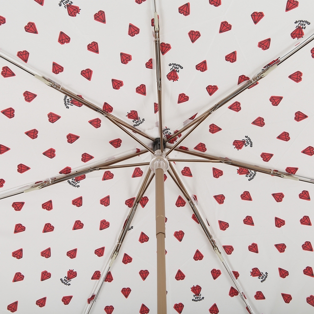 화이트 컬러에 핑크 컬러 다이아몬드 패턴이 새겨진 3단 수동 우산입니다.