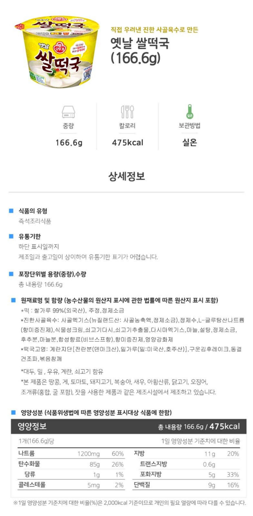 - 원재료명 및 함량상세설명에 표시함