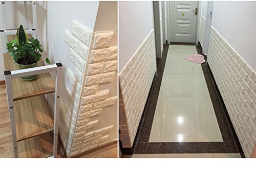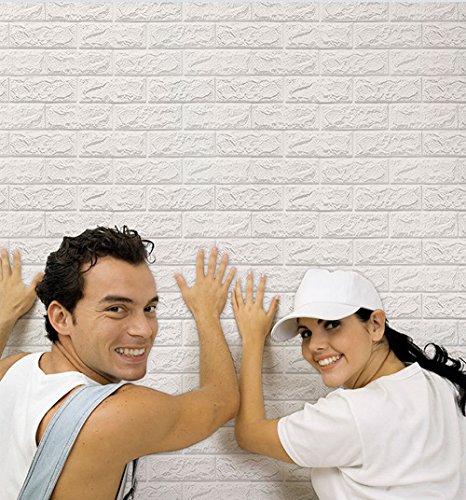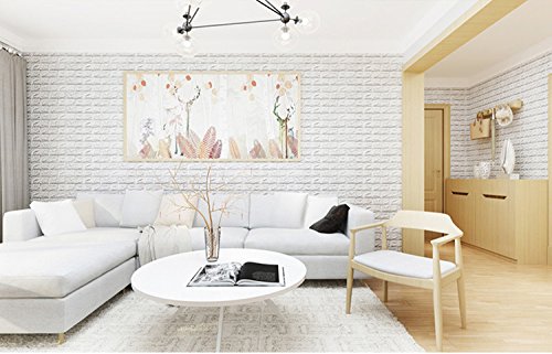 NHSUNRAY 3D Brick Wallpaper PE Foam Non-toxic Odor-free Self-adhesive DIY Panel Decal Wall Covering Sticker Pattern Background for Bedroom Living room(23.6” X 23.6” /60 X 60 cm) (20pcs, White)