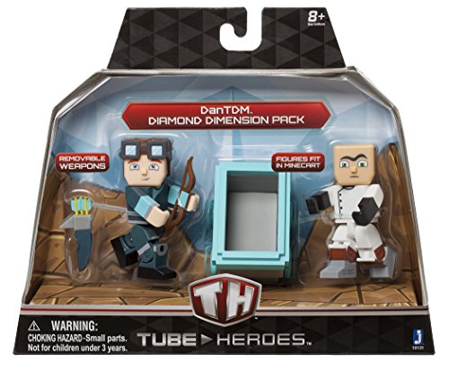 -. Binding : Toy -. Brand : Tube Heroes -. EAN : 0681326101314 -. Feature : DanTDM is the creator and hero of his own world, the Diamond Dimension / With his friend Dr. Trayaurus and loyal companion, Grim, he's ready for any adventure! / This pack includes: DanTDM Figure; Dr. Trayaurus Figure; Diamond Minecart; Wearable Quiver; Bow -. IsAdultProduct : 0 -. Label : Jazwares Domestic -. LegalDisclaimer : New in original package Ship the same day of order -. Manufacturer : Jazwares Domestic -. Model : 10131 -. MPN : 10131 -. PackageQuantity : 1 -. PartNumber : 10131 -. ProductGroup : Toy -. ProductTypeName : TOYS_AND_GAMES -. Publisher : Jazwares Domestic -. Studio : Jazwares Domestic -. Title : Tube Heroes TDM Diamond Dimension Action Figure Pack -. UPC : 681326101314 -. Warranty : No Warranty