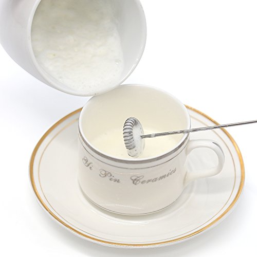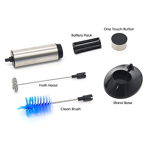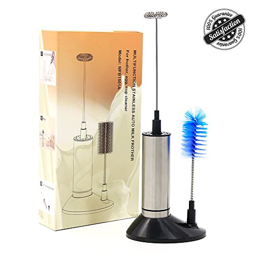 Vizpet Electric Milk Frother - Latte Drink Frother Stainless Steel Handheld Foam Maker with Stand and Brush Perfect for Milk Egg Coffee Latte Cappuccino by Battery Operated