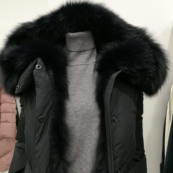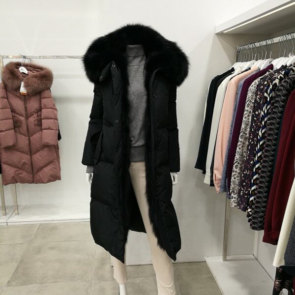 완전 롱이면서 길게 일자로 나와 슬림해 보이고 아주 포근하면서 따뜻해 보여요.여우털이 풍성해 고급스럽고 세련되었어요.
